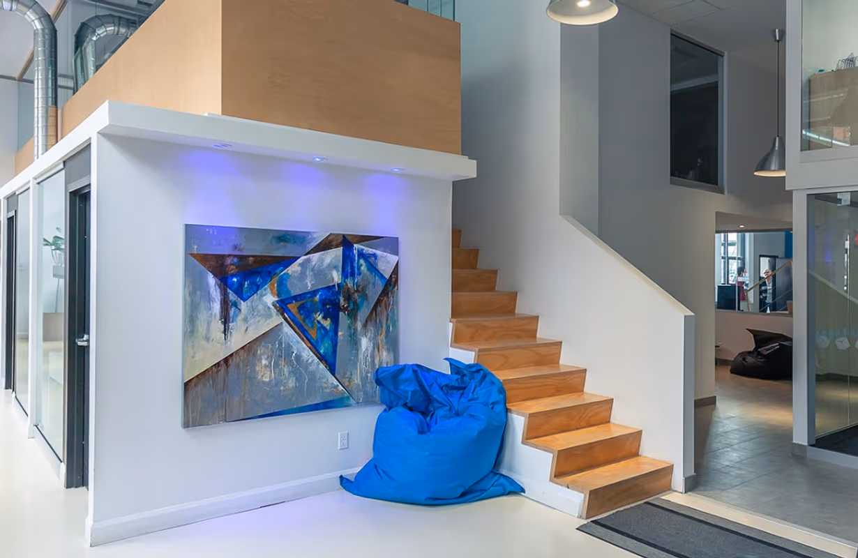 This stunning coworking space at 5955 Rue Saint-Laurent Lévis is a great place to house your business. From 1 desk, perfect for any size or budget, to 5 available spaces for rent, the serviced office offers amenities such as 24/7 access, administration support, balcony/outdoor area, meeting room, reception services and telephone answering. Not only that but the building also provides additional features like air conditioning, bike racks, parking (paid), business lounge for members and disabled access throughout. Security is also guaranteed with concierge in foyer available 24 hours a day. Conveniently located near Québec city centre with Terminus de la Traverse bus stop just 2 minutes away, you can easily get around and explore the nearby area. Plus there's a train station 34 min away so transport options are plentiful! And all of this comes at an affordable rate of CA$322 per week (CA$1400 per month). Don't miss out on this incredible opportunity - book your tour today!